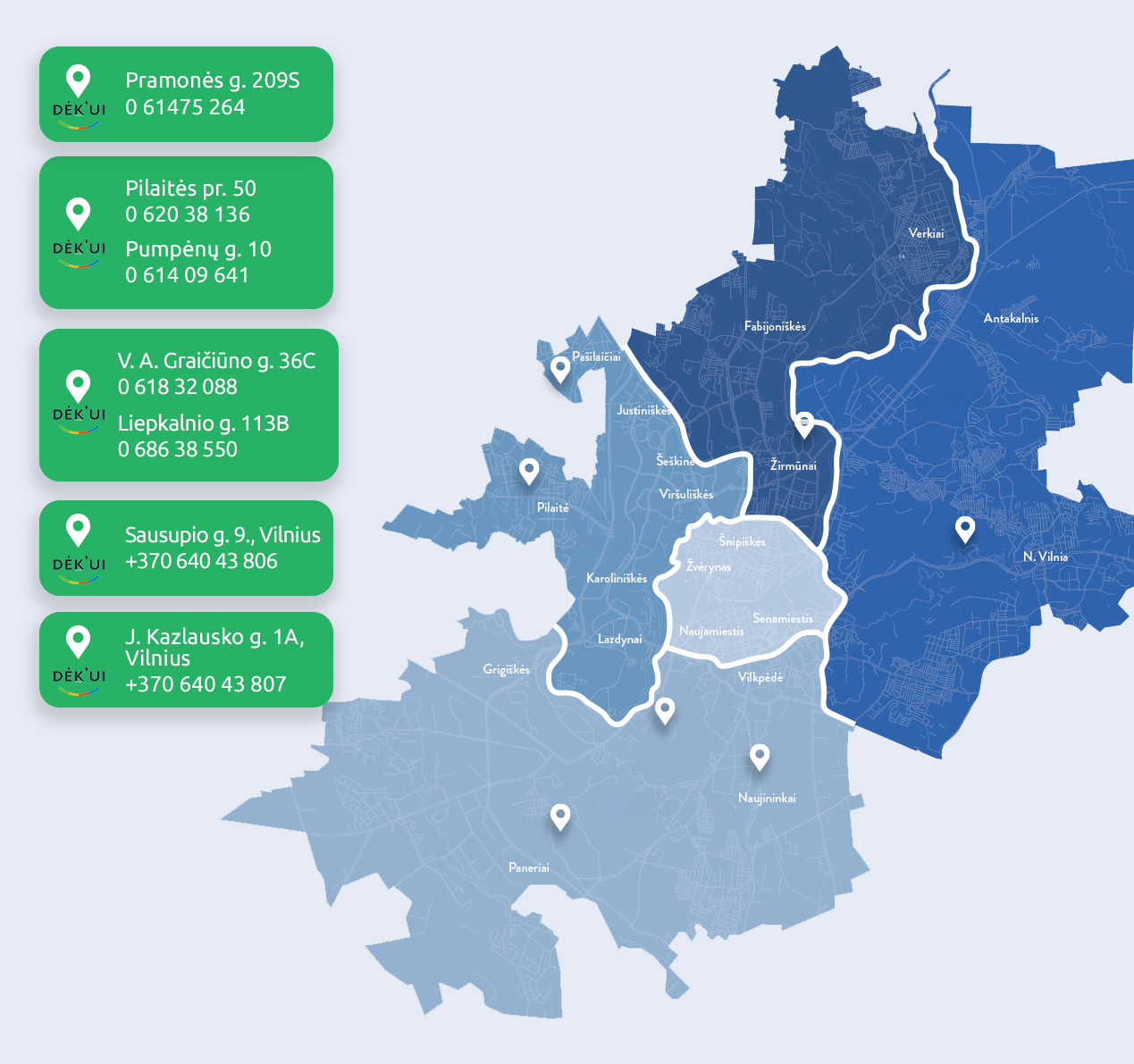 Apie pažeidėjus ir jų neteisėtai išmestas atliekas prie konteinerių praneškite VASA [email protected].