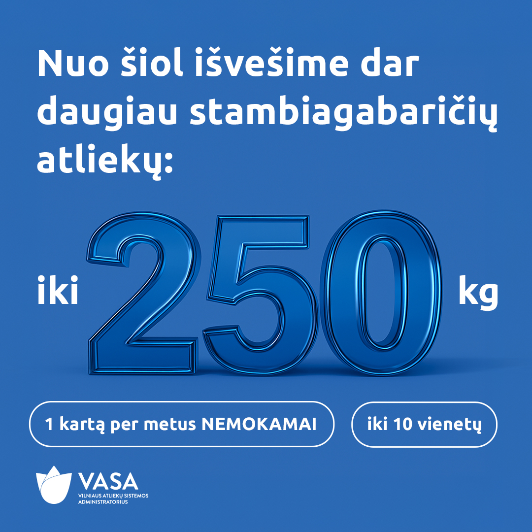 - Jei atliekos jau išneštos ir sudėtos vežėjui prieinamoje vietoje, gali būti išvežta iki 250 kg atliekų.